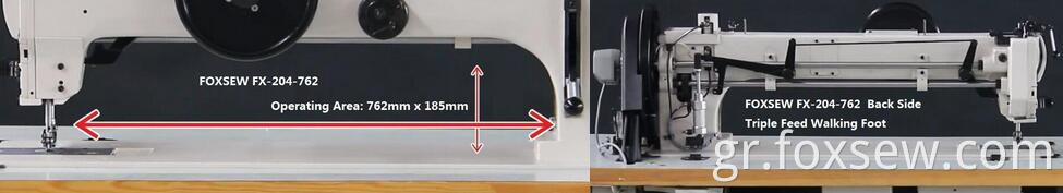 FOXSEW 204-762 Long Arm Flat Bed Extra Heavy Duty Triple Feed Foot Foot Lockstitch Rapting Μηχανή με λεωφορείο μεγάλου βαρέλι για εξαιρετικά βαριά υλικά με παχύ νήμα