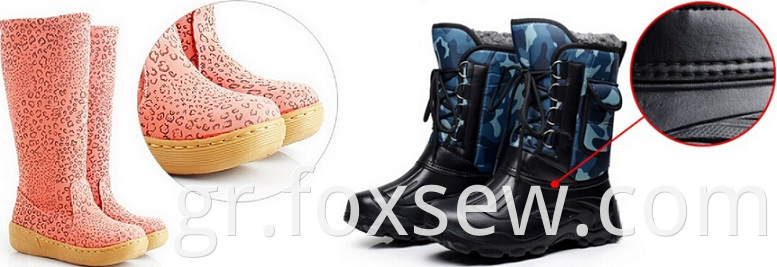 FX-169T: κατάλληλο για μπότες, μπότες χιονιού, δύο βελόνα ή τρεις βελόνες για ραφή διπλής παράλληλης γραμμής ή τριών παράλληλων πλευρικών διακοσμητικών ραφών όλων των ειδών μπότες ή παπουτσιών.